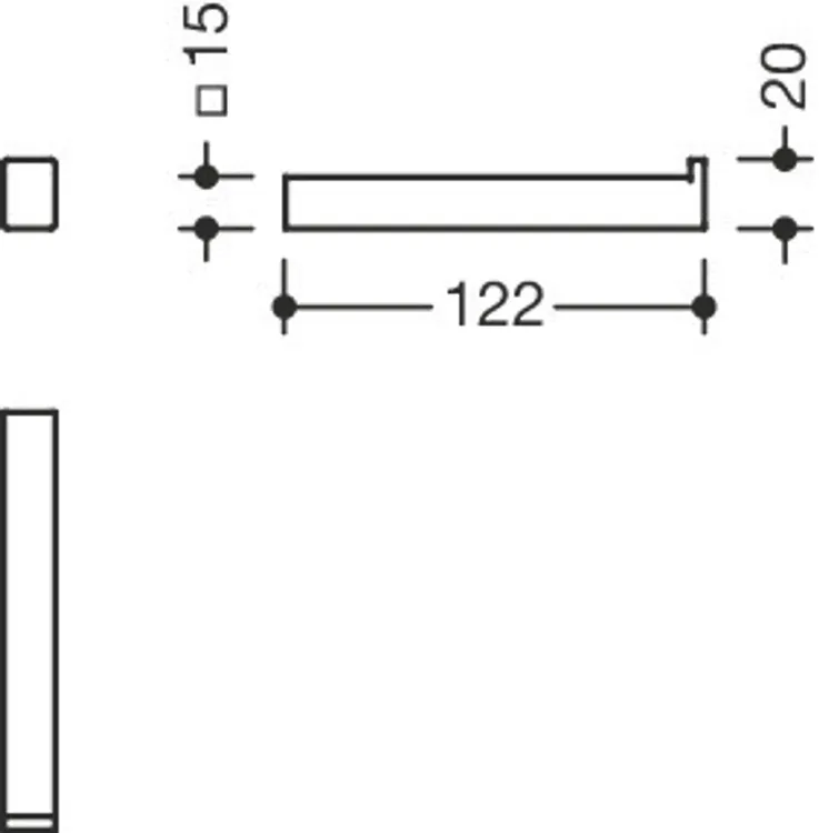 Edelstahl, pulverbeschichtet, Breite 15 mm, Höhe 20 mm, Tiefe 122 mm.