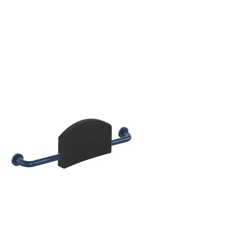 Mehr anzeigen gepolsterte Lehne mit beidseitig angebrachten, rechtwinklig gebogenen Stangen und Befestigungsrosetten, erfüllt die Anforderungen nach DIN 18040, mit durchgehendem, korrosionsgeschütztem Stahlkern, Achsmaß von 670 mm bis 730 mm bauseits verstellbar, 220 mm hoch und 150 mm tief, Rückenstütze 350 mm breit, Stangendurchmesser 33 mm, Rosettendurchmesser 70 mm, Rückenpolster aus schwarzem PUR, aus hochwertigem Polyamid nach HEWI Farbtabelle, Befestigungsmaterial BM 211 im Lieferumfang enthalten.