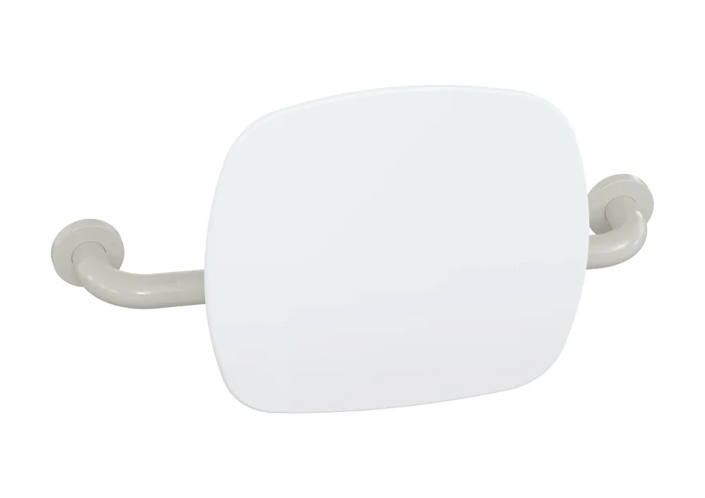 Mehr anzeigen Polyamid, hochglänzend, Lehne aus Kunststoff in HEWI Farbe 98 (Signalweiß), Breite 435 mm bis 535 mm, Tiefe 150 mm, Lehne 334 mm hoch und 370 mm breit, Stangendurchmesser 33 mm, Montage an der Wand mit Rosetten, erfüllt die Anforderungen nach BS-Standard BS 8300:2009 (+A1:2010)/Doc M.