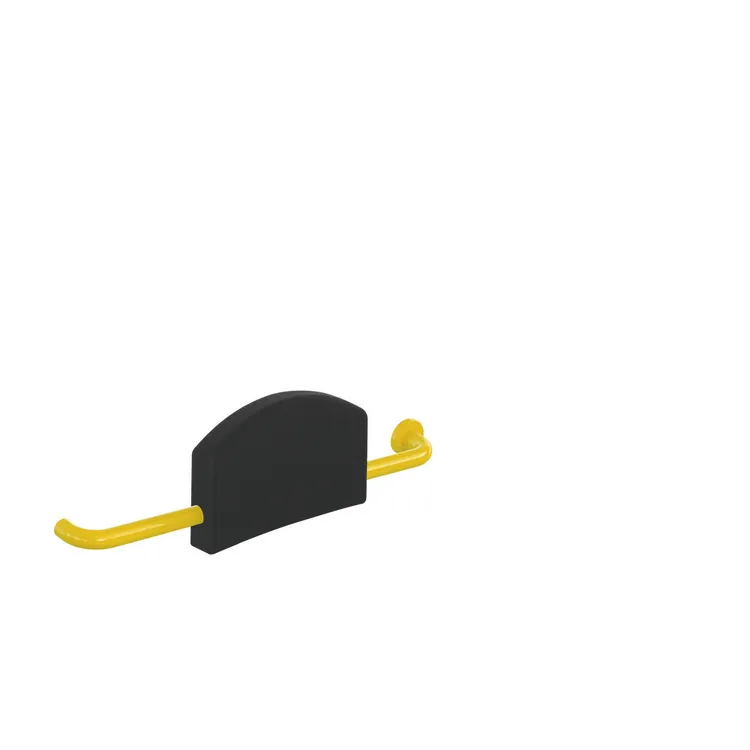- gepolsterte Lehne mit beidseitig angebrachten, rechtwinklig gebogenen Stangen und Befestigungsrosetten