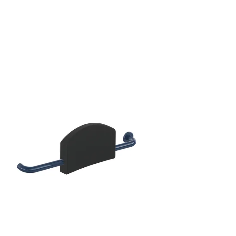Mehr anzeigen gepolsterte Lehne mit beidseitig angebrachten, rechtwinklig gebogenen Stangen einseitiger Befestigungsrosette (BM211 im Lieferumfang enthalten), erfüllt die Anforderungen nach DIN 18040, mit durchgehendem, korrosionsgeschütztem Stahlkern, Ausführung rechts, Achsmaß von 670 mm bis 730 mm bauseits verstellbar, 220 mm hoch und 150 mm tief, Rückenstütze 350 mm breit, Stangendurchmesser 33 mm, Rosettendurchmesser 70 mm, Rückenpolster aus schwarzem PUR, aus hochwertigem Polyamid nach HEWI Farbtabelle, wandspezifisches HEWI Befestigungsmaterial bitte separat bestellen.