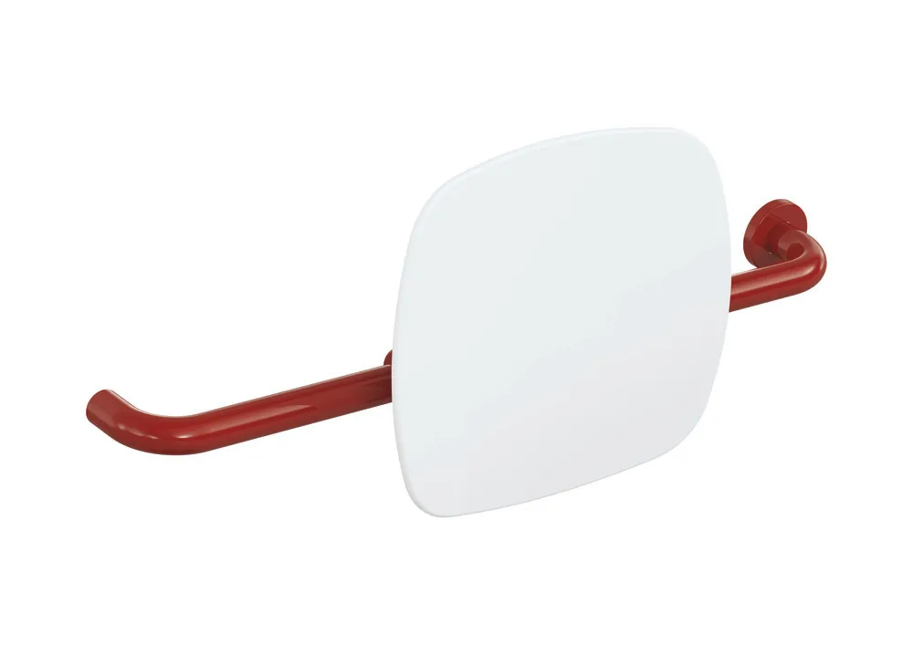 Mehr anzeigen Polyamid, hochglänzend, Lehne aus Kunststoff in HEWI Farbe 98 (Signalweiß), Breite 650 bis 750 mm, Tiefe 150 mm, Lehne 334 mm hoch und 370 mm breit, Stangendurchmesser 33 mm, einseitig Montage an der Wand mit Rosetten (links), einseitig Montage an Stützklappgriffen oder Wandstützgriffen mit Wandplatte (rechts), erfüllt die Anforderungen nach DIN 18040 und ÖNORM B1600/1601.