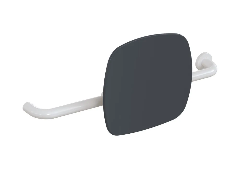 Mehr anzeigen Polyamid, hochglänzend, Lehne aus Kunststoff in HEWI Farbe 92 (Anthrazitgrau), Breite 650 bis 750 mm, Tiefe 150 mm, Lehne 334 mm hoch und 370 mm breit, Stangendurchmesser 33 mm, einseitig Montage an der Wand mit Rosetten (links), einseitig Montage an Stützklappgriffen oder Wandstützgriffen mit Wandplatte (rechts), erfüllt die Anforderungen nach DIN 18040 und ÖNORM B1600/1601.