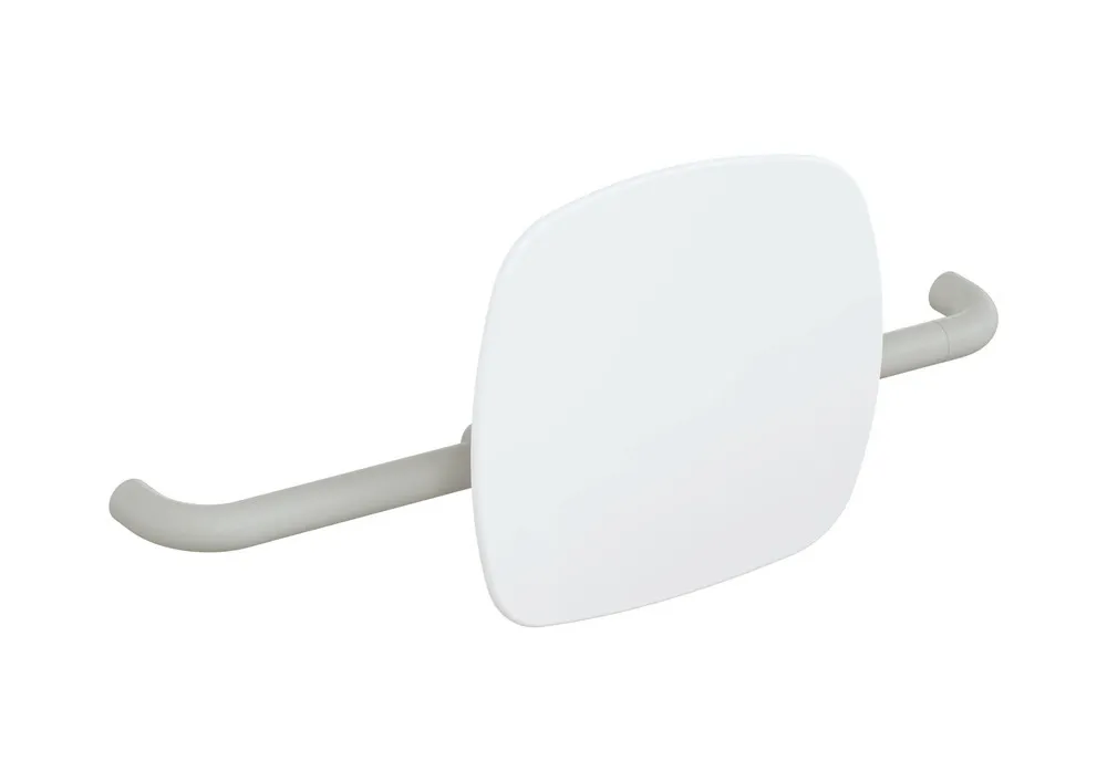 Mehr anzeigen Polyamid, matt, Lehne aus Kunststoff in HEWI Farbe 98 (Signalweiß), Breite 650 bis 750 mm, Tiefe 150 mm, Lehne 334 mm hoch und 370 mm breit, Stangendurchmesser 33 mm, Montage an Stützklappgriffen oder Wandstützgriffen mit Wandplatte, bauseits verstellbar, erfüllt die Anforderungen nach DIN 18040 und ÖNORM B1600/1601.