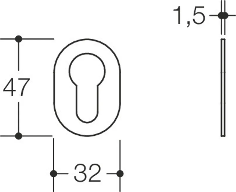 aus Edelstahl (1.4301), 32 x 47 mm. Fixierung auf der Tür mittels Klebeverbindung