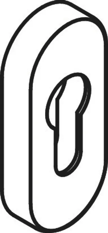 Mehr anzeigen ohne Nocken, Edelstahl, Oberfläche matt geschliffen, Rosettenunterkonstruktion in Kunststoff, Rosetten-Abdeck-Kappe, oval, 33 x 71 mm, 10,5 mm hoch, 1,5 mm Wandstärke, Lieferung ohne Schrauben.