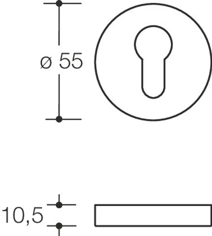 Mehr anzeigen kurze Nocken, für Feuerschutztüren, Edelstahl, Oberfläche matt geschliffen, Rosettenunterkonstruktion in Kunststoff-Stahlverbundbau, Rosetten-Abdeck-Kappe, rund, Durchmesser 55 mm, 10,5 mm hoch, 1,5 mm Wandstärke, Lieferung ohne Schrauben.