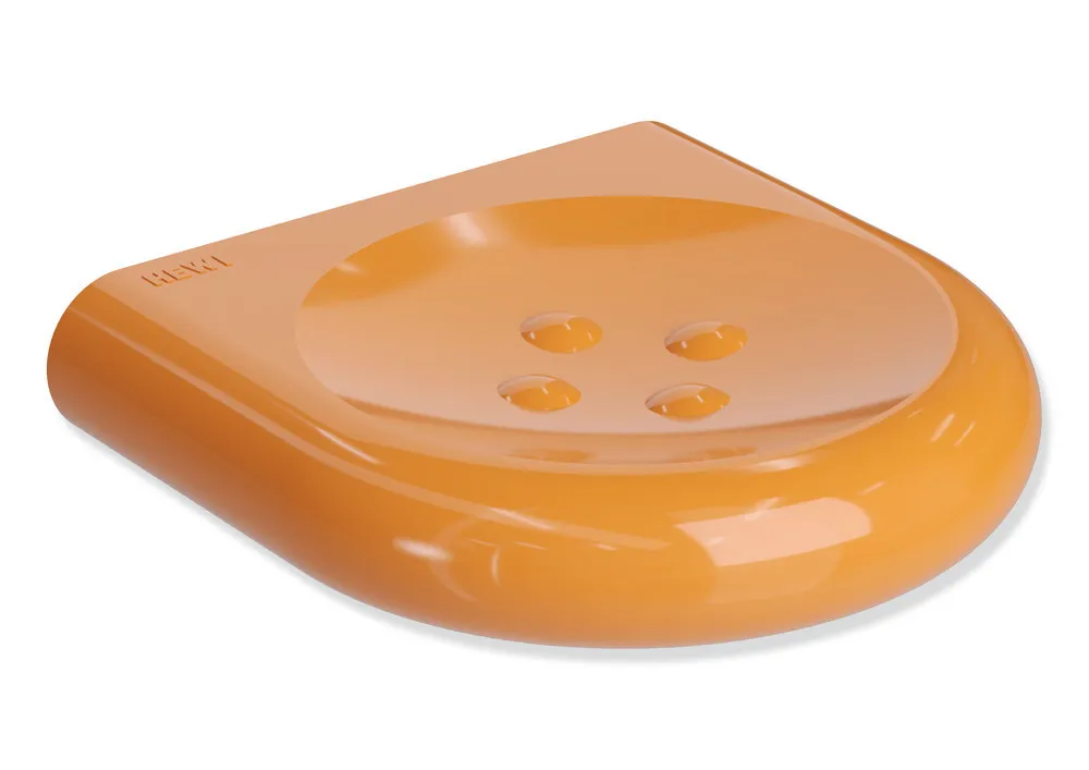 Seifenablage mit Noppen, eine Drucktaste ermöglicht das Abnehmen, diebstahlgeschützt durch Verriegelung, 120 mm breit, 25 mm hoch und 120 mm tief, aus hochwertigem Polyamid nach HEWI Farbtabelle, inklusive korrosionsfreiem HEWI Befestigungsmaterial.