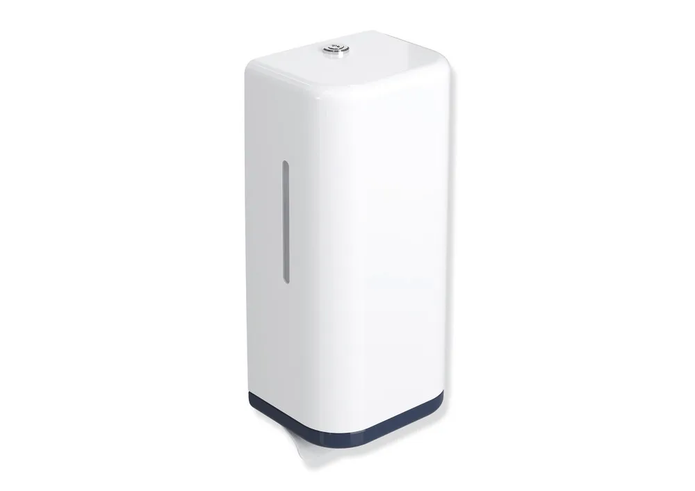 Korpus und Hebel aus hochglänzendem Polyamid in der HEWI Farbe 98 (Signalweiß), Rahmenelement aus hochglänzendem Polyamid, Füllmenge 600 ml, Breite 134 mm, Höhe 278 mm, Tiefe 106 mm.