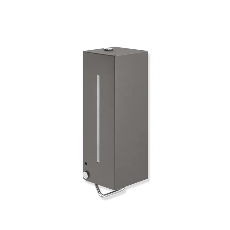 Mehr anzeigen kantiger Grundkörper, mit Innenbehälter zur freien Befüllung, Füllmenge 600 ml, Innenbehälter zur Reinigung herausnehmbar, 102 mm breit, 270 mm hoch und 98 mm tief, aus hochwertigem Edelstahl, pulverbeschichtet in den HEWI Farben DX (Weiß tiefmatt), DC (Schwarz tiefmatt) und SC (Dunkelgrau Perlglimmer tiefmatt), ohne Erstbefüllung, Behälter nicht für Desinfektionsmittel geeignet, inklusive korrosionsfreiem HEWI Befestigungsmaterial.