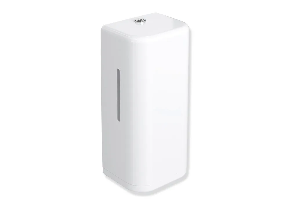 Mehr anzeigen Korpus aus hochglänzendem Polyamid in der HEWI Farbe 98 (Signalweiß), Rahmenelement / Entnahmeöffnung aus hochglänzendem Polyamid, Füllmenge 500 ml, Breite 134 mm, Höhe 278 mm, Tiefe 106 mm, CE-Kennzeichnung nach EMC Directive 2014/30/EU.