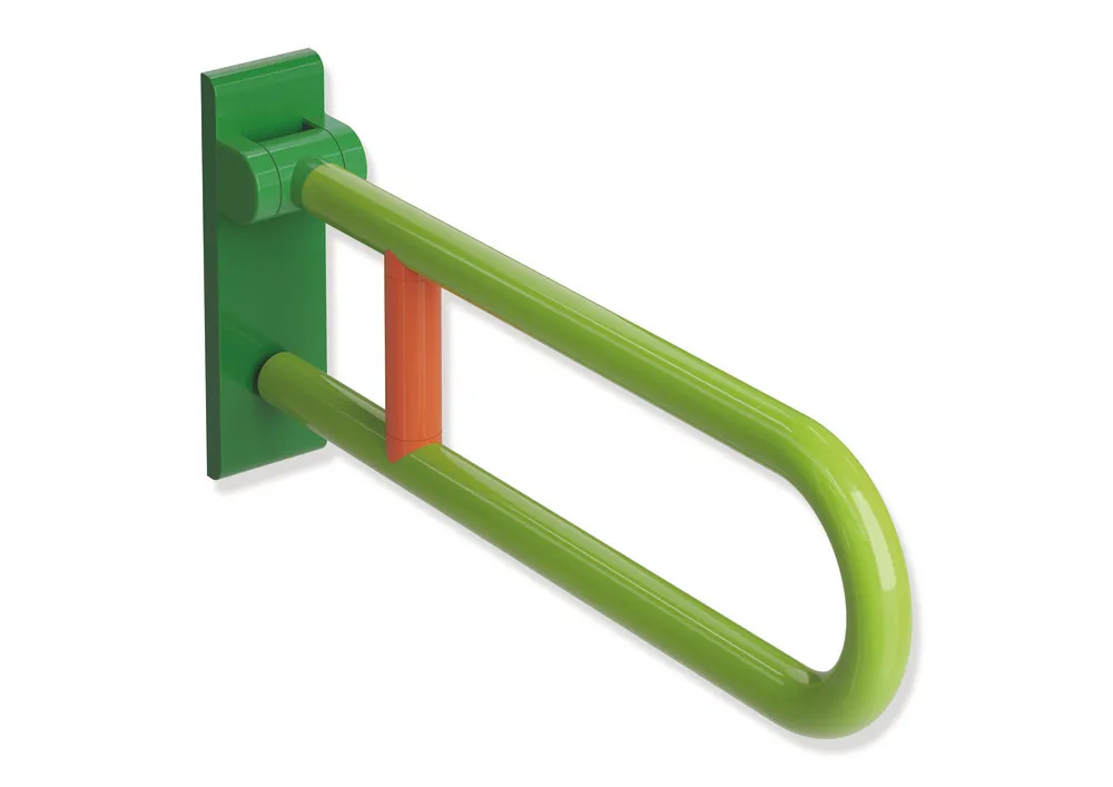 Polyamid, hochglänzend, dreifarbiger Stützklappgriff, Ausleger: 74 (Apfelgrün), Wandplatte: 72 (Maigrün), Stütze: 36 (Koralle), Ausladung 600 mm, getestet bis 150 kg bei Verwendung mit HEWI Befestigungsmaterial, empfohlenes maximales Gewicht des Anwenders: 150 kg, wird gemäß Verordnung (EU) 2017/745 über Medizinprodukte produziert, erfüllt die Anforderungen nach DIN 18040.