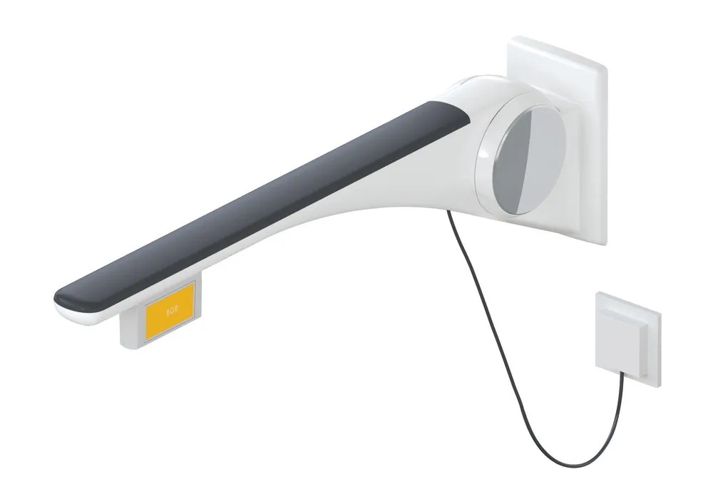 Mehr anzeigen Ausleger aus Aluminium, pulverbeschichtet, glänzend mit Griffpad aus Kunststoff, mit hochglänzend verchromten Designelementen, hochwertige Kunststoffoberfläche und kratzfeste Pulverbeschichtung, Ausladung 850 mm, mit Funktionstaste (E-Ausführung), Ausführung rechts, einfache Montage durch separate Installation der Montageplatte aus Edelstahl, matt geschliffen, getestet bis 150 kg bei Verwendung mit HEWI Befestigungsmaterial, empfohlenes maximales Gewicht des Anwenders: 150 kg, wird gemäß CE- und UKCA-Verordnung (EU) 2017/745 über Medizinprodukte produziert, erfüllt die Anforderungen nach DIN 18040, ÖNORM B1600/1601 und SIA 500.