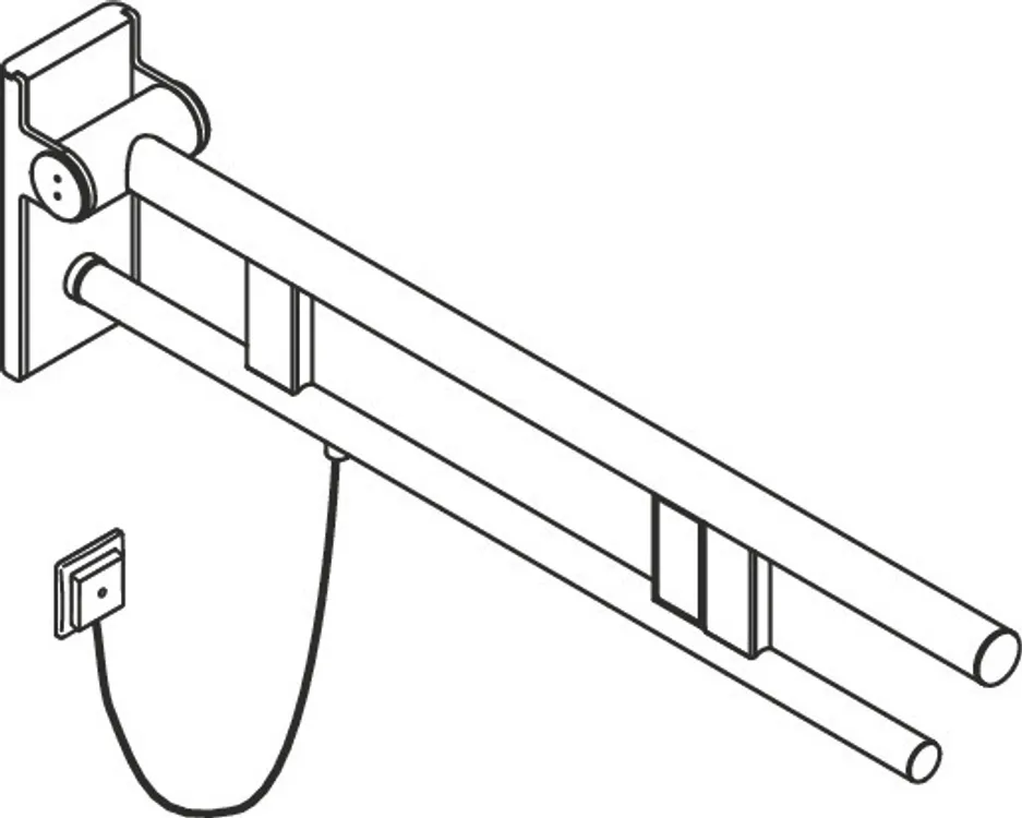 Edelstahl, verchromt, Ausladung 750 mm, mit Spül-/Funktionstasten (E-Ausführung), Ausführung rechts, getestet bis 150 kg bei Verwendung mit HEWI Befestigungsmaterial, empfohlenes maximales Gewicht des Anwenders: 150 kg, wird gemäß CE- und UKCA-Verordnung (EU) 2017/745 über Medizinprodukte produziert, erfüllt die in Belgien gültigen Anforderungen (CWATUPE, WVG Vlaanderen) hinsichtlich der Ausladung des Stützklappgriffes am WC.