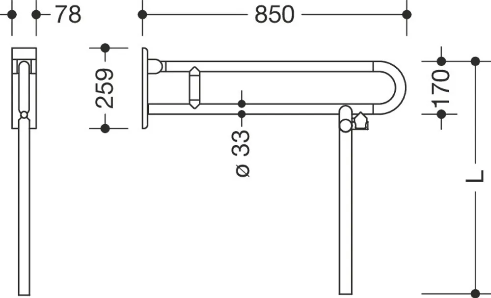 - Ausladung 850 mm, 259 mm hoch und 78 mm breit, Stangendurchmesser 33 mm
