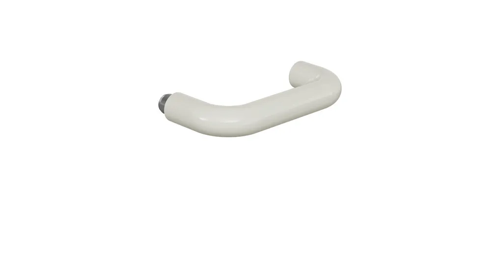 Türdrücker 111.23R in U-Form aus Polyamid mit durchgehendem Stahlkern bis in das Drückerende, durchgängig eingefärbt, Durchmesser 23 mm, mit Ansatzführung und Rastnut. Montage durch einfaches Einrasten der Türdrücker in die auf der Tür vormontierten Unterteile.