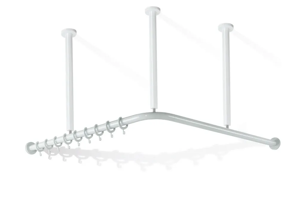 HEWI Vorhangstange der Serie 801, mit zusätzlicher Vorbereitung für Deckenabhängung auf den Schenkeln