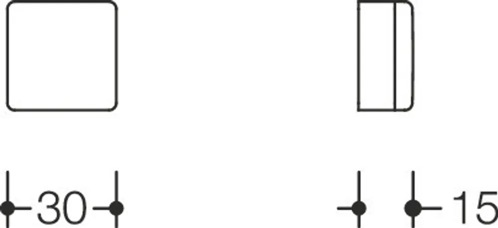 Mehr anzeigen aus Vierkantrohr 30 x 30 mm, 15 mm lang, mit schwarzem elastischen Puffer, Diebstahlgeschützt durch verdeckte Verschraubung, aus Edelstahl, matt geschliffen.