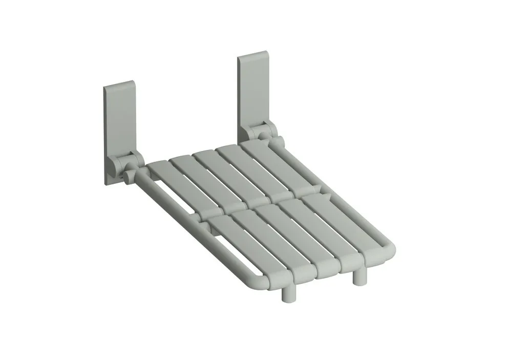 Konstruktion aus Stangen und Sitzelementen, mit durchgehendem, korrosionsgeschütztem Stahlkern, Wandplatte aus Polyamid mit integriertem Stahlkern, 15 1/4 inch (387 mm) breit und 29 1/8 inch (740 mm) tief, Sitzelemente 2 3/16 inch (55 mm) breit, inklusive Befestigungsmaterial zur Befestigung an Hohlraumwänden mit Holzhinterfütterung aus zwei 2 inch x 16 inch Schicht- oder Hartholzplatten verbunden mit einer 1/2 inch x 16 inch Schichtholzplatte, aus hochwertigem, mattem Polyamid in den HEWI Farben 99 (Reinweiß), 95 (Felsgrau) und 92 (Anthrazitgrau), erfüllt die Anforderungen nach 2010 ADA Standards und ICC/ANSI A117.1-2017.