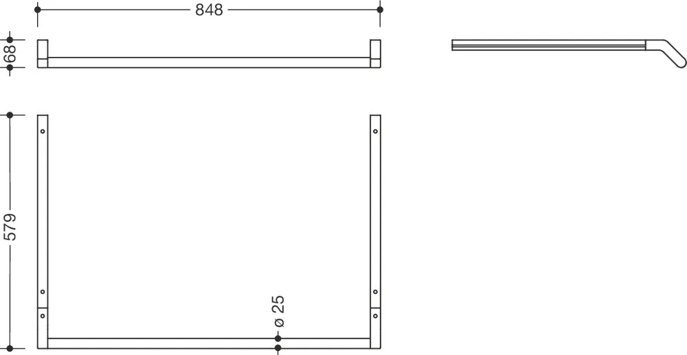 - 848 mm breit, Durchmesser Haltestange 25 mm
