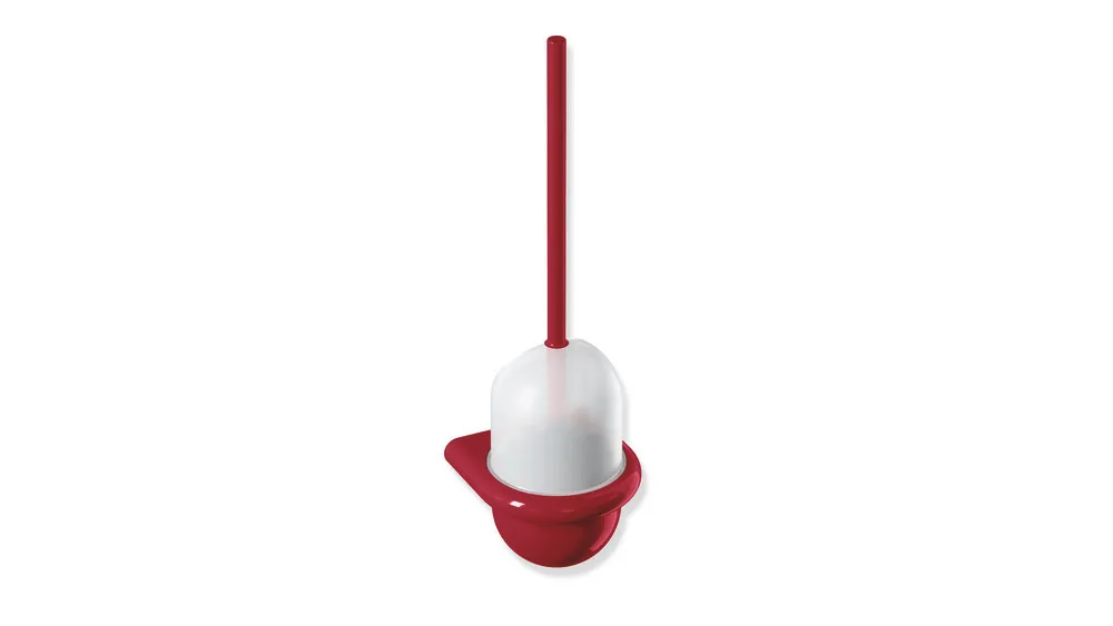 Bürstengriff mit auswechselbarem schwarzem Bürstenkopf aus Polyamid, Bürstentopf mit gewölbtem Boden und sphärenförmigem, teilweise offenem Oberteil in ringförmigem Halter, der Behälter ist herausnehmbar, kann aber auch diebstahlgeschützt montiert werden, diebstahlgeschützt durch verdeckte Verschraubung, 141 mm breit, 470 mm hoch und 140 mm tief, Halter, Bürstentopf und Bürstengriff aus hochwertigem Polyamid nach HEWI Farbtabelle, Oberteil aus transluzentem Kunststoff in Farbe weiß, inklusive korrosionsfreiem HEWI Befestigungsmaterial.