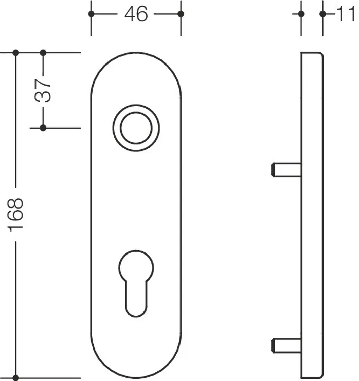 Backplate cap 46 x 168 mm, 11 mm high, flat, 1.5 mm wall thickness.