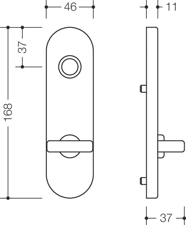 short stems, in R-technology made of polyamide, high-polished surface, for handle diameter 21.3 mm, backplate substructure made of synthetic material-stainless steel composite , WC version with bolt, backplate cover 46 x 168 mm, 11 mm high, 1.5 mm wall thickness, Supplied without screws.