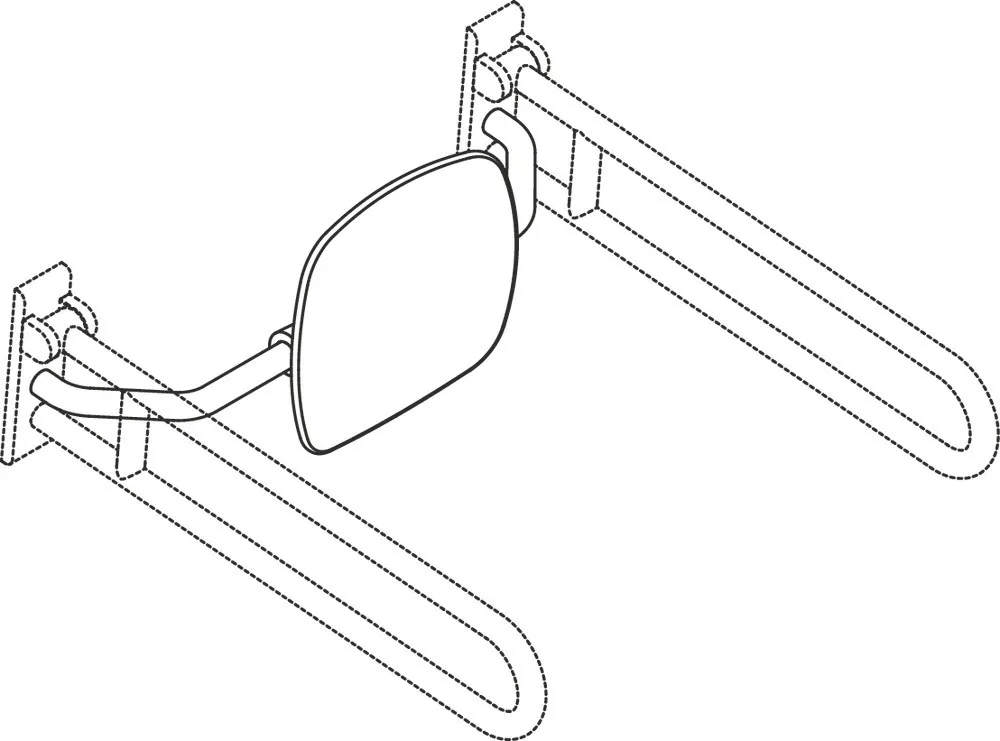 polyamide, matt, backrest made of synthetic material in HEWI colour 92 (anthracite grey), width 650 to 750 mm, 230 mm deep, backrest 334 mm high and 370 mm wide, rail diameter 33 mm, mounting on HEWI hinged support rails or stationary support rails with wall plate, can be adjusted on site.