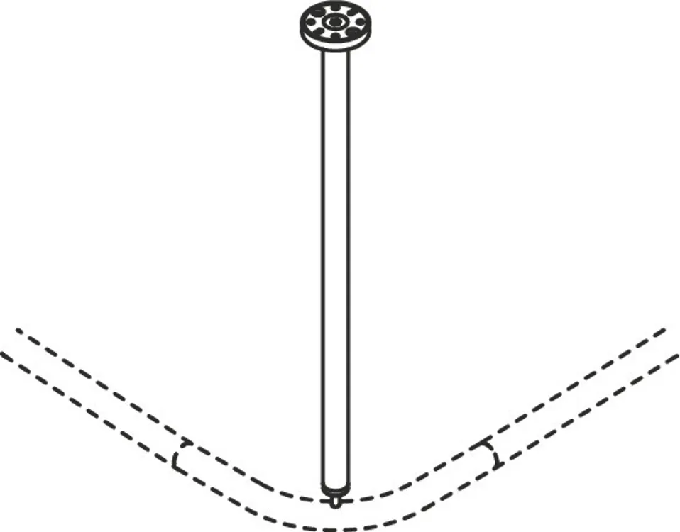Show more straight rail with mounting rose, made of high-quality stainless steel, chrome, length 600 mm, rail diameter 25 mm, rose diameter 70 mm, can be shortened at the rose to 200 mm on site, fixed onto the ceiling with rose, including non-corrosive fixing material.