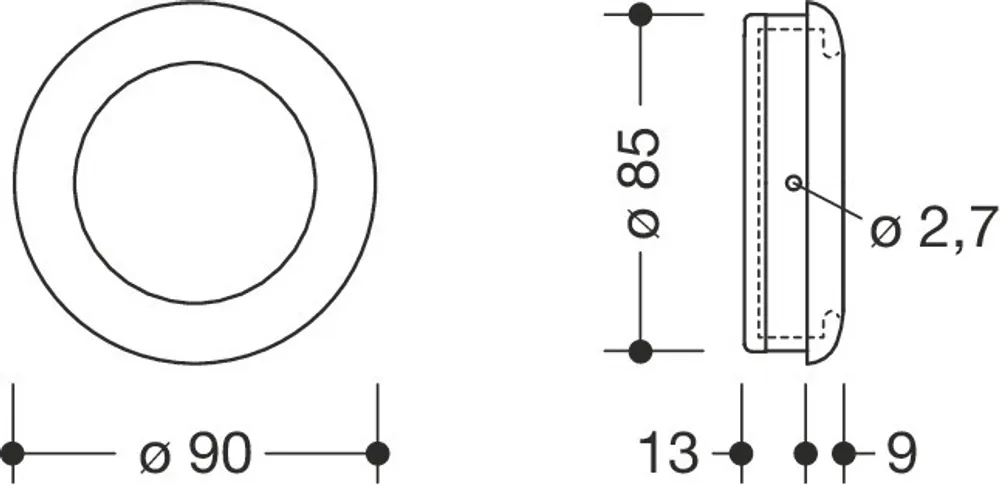 made of solid coloured high-quality matt 90 mm diameter, 22 mm high, recess depth 13 mm, with grip recess.