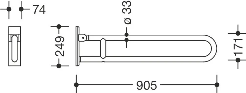 Stainless steel, matt polished, Projection 900 mm, tested up to 150 kg when used with HEWI fixing material, Recommended maximum weight of the user: 150 kg, is produced in accordance with CE and UKCA Regulation (EU) 2017/745 on medical devices, fulfils the ÖNORM B1600/1601 requirements.
