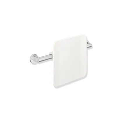 Show more Stainless steel connection, satin finished, backrest made of synthetic material in HEWI colours 98 (signal white) or 92 (anthracite grey), Centre-to-centre distance from 478 to 578 mm, adjustable on site, 150 mm deep, For wall mounting, easy mounting due to individually mountable stainless steel fixing plates for hanging the rail, secured with fastening screw (theft protection), meets the requirements of BS standard BS 8300:2009 (+A1:2010)/Doc M.