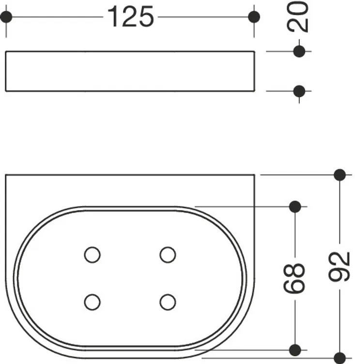 - width 125 mm, 20 mm high, 92 mm deep