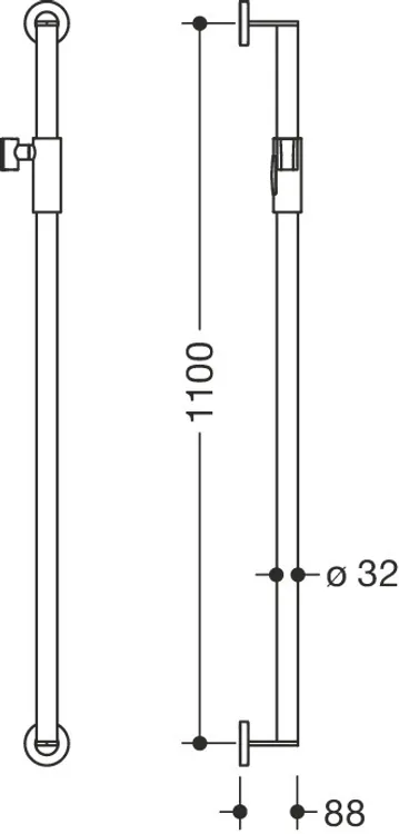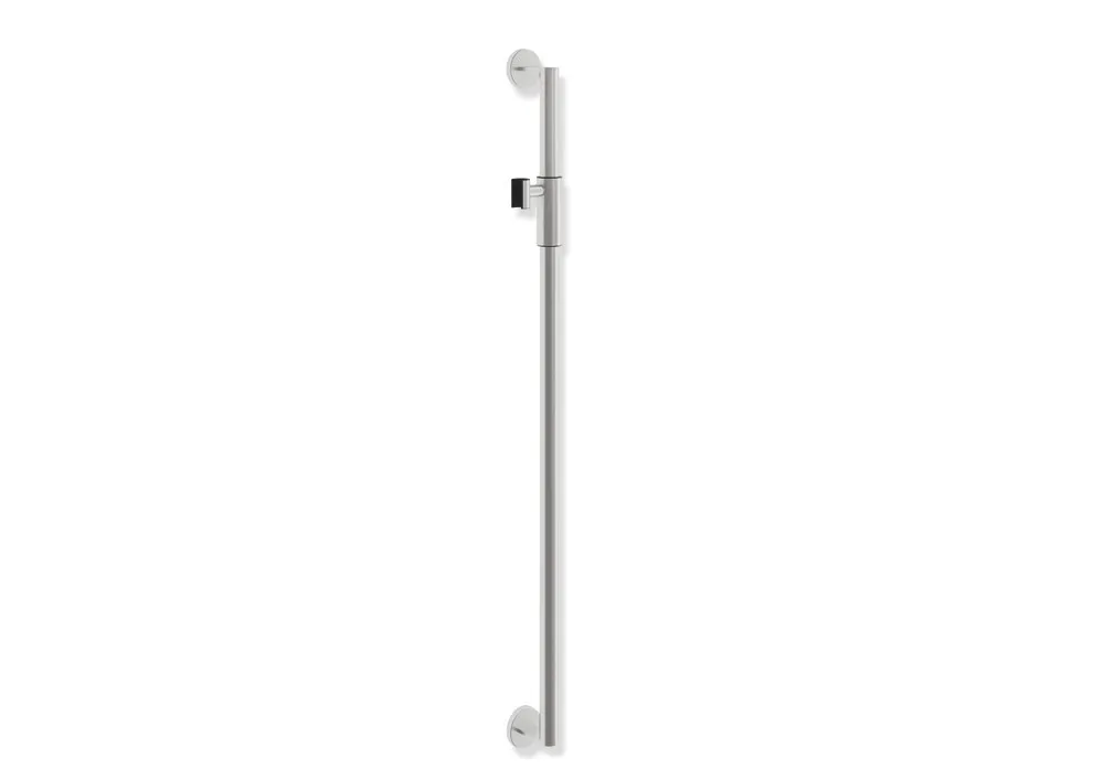 stainless steel, satin finished, centre-to-centre 1100 mm, 32 mm diameter, with continuously adjustable, magnetic stainless steel shower holder in the same colour as the shower rail.