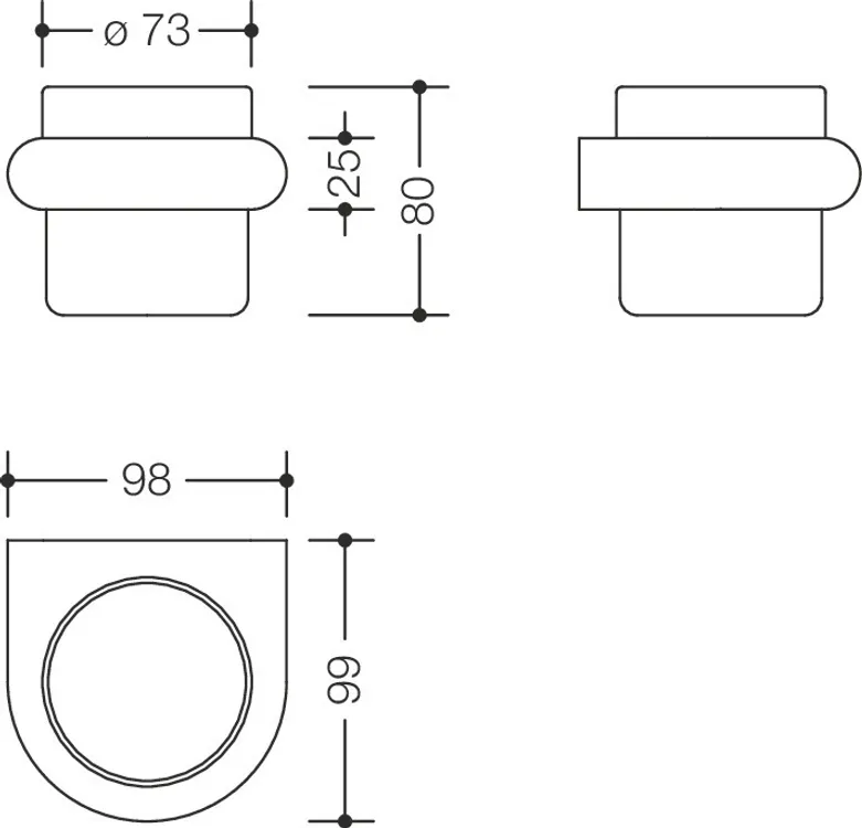 - ring-shaped wall-mounted bracket, 98 mm wide, 25 mm high and 99 mm deep