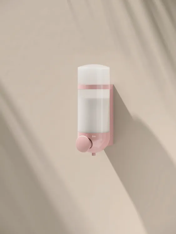 - Wall base and bracket made of high-gloss polyamide in HEWI colour 47 (pale pink)