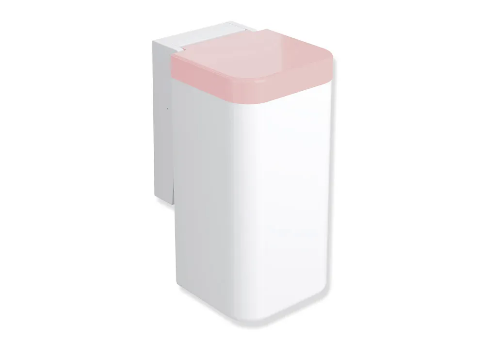 Body and wall holder made of high-gloss polyamide in HEWI colour 98 (signal white), Lid made of high-gloss polyamide, Capacity approx. 6 l, Height 310 mm, Depth 198 mm, Width 161 mm, Wall mounting.