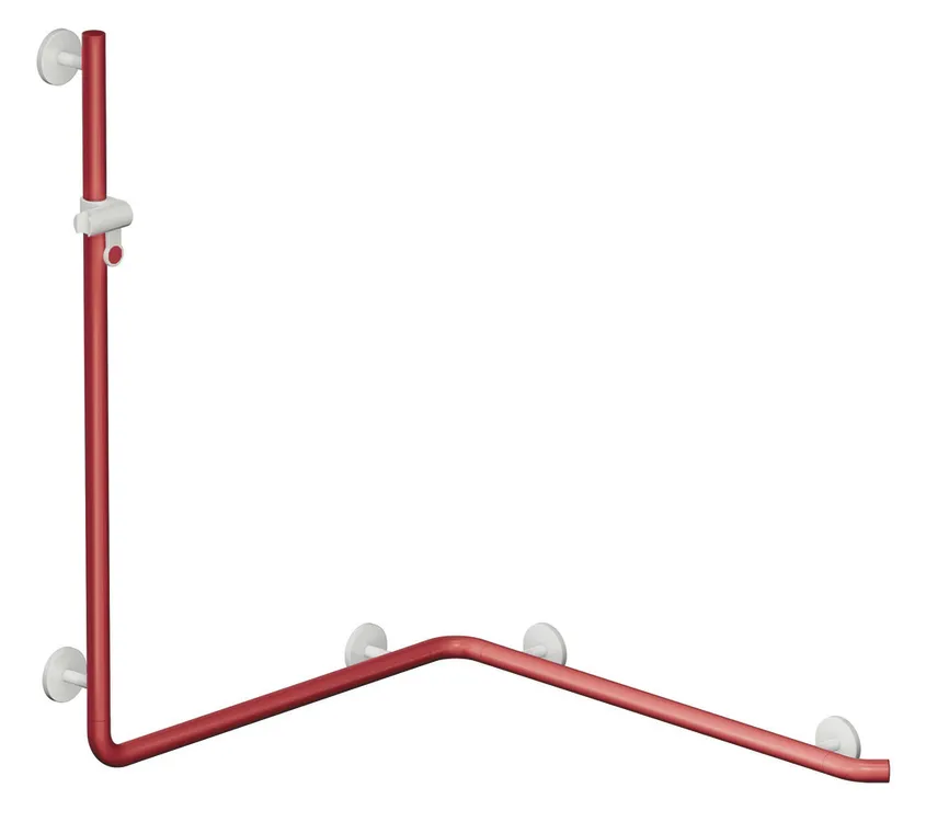 Show more Polyamide, high gloss, Shower head holder, supports and roses made of high-quality polyamide in HEWI colour 99 (Pure white), with continuously adjustable shower head holder, vertical length 1100 mm, Horizontal lengths 762 and 962 mm, Diameter 33 mm, Can be mounted on the left and right, tested up to 200 kg when used with HEWI fixing material, Recommended maximum weight of the user: 150 kg, fulfils the ÖNORM B1600/1601 requirements.