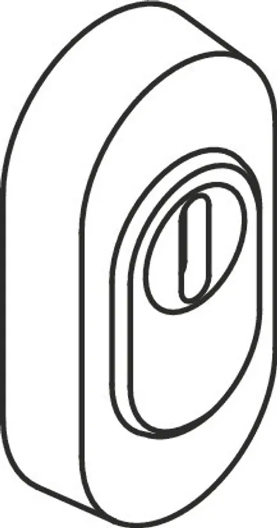 Show more external rose, long stems, solid, oval 72 x 37 mm, 14 mm high, hardened, with integrated cylinder cover with supporting surround, in conical version, as protection against forced twisting off, holes for profiled cylinder (Euro (PZ)), for cylinder projections: 10.5 - 15 mm. The security escutcheon conforms to the requirements of DIN 18273., Surface satin finished, Supplied without screws.
