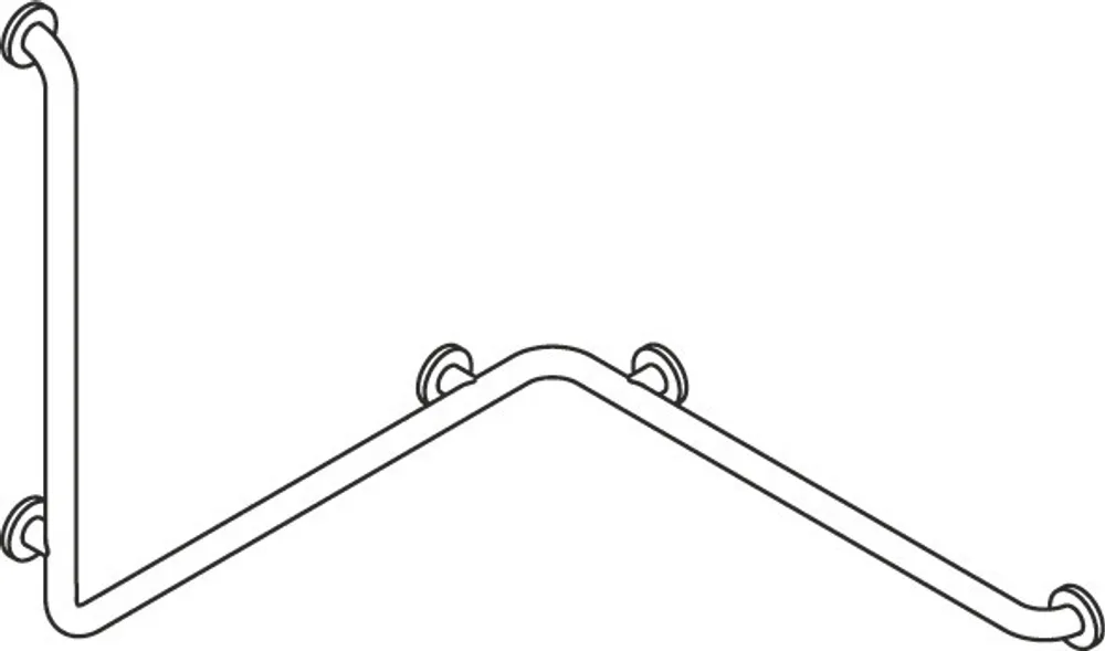 Show more positioned horizontally and vertically, rails connected at a right angle with steel fixing roses, with corrosion-protected steel core throughout, vertical length 30 inch (762 mm), horizontal lengths 31 1/2 inch (800 mm), 2 3/4 inch (70 mm) deep, rail diameter 1 5/16 inch (33 mm), rose diameter 2 3/4 inch (70 mm), made from high-grade synthetic material in the HEWI colors 99 (pure white), 95 (stone gray), 92 (anthracite gray), 90 (jet black), 86 (sand), 84 (umber) and 33 (ruby red), meets the requirements of 2010 ADA standards and ICC/ANSI A117.1-2017.