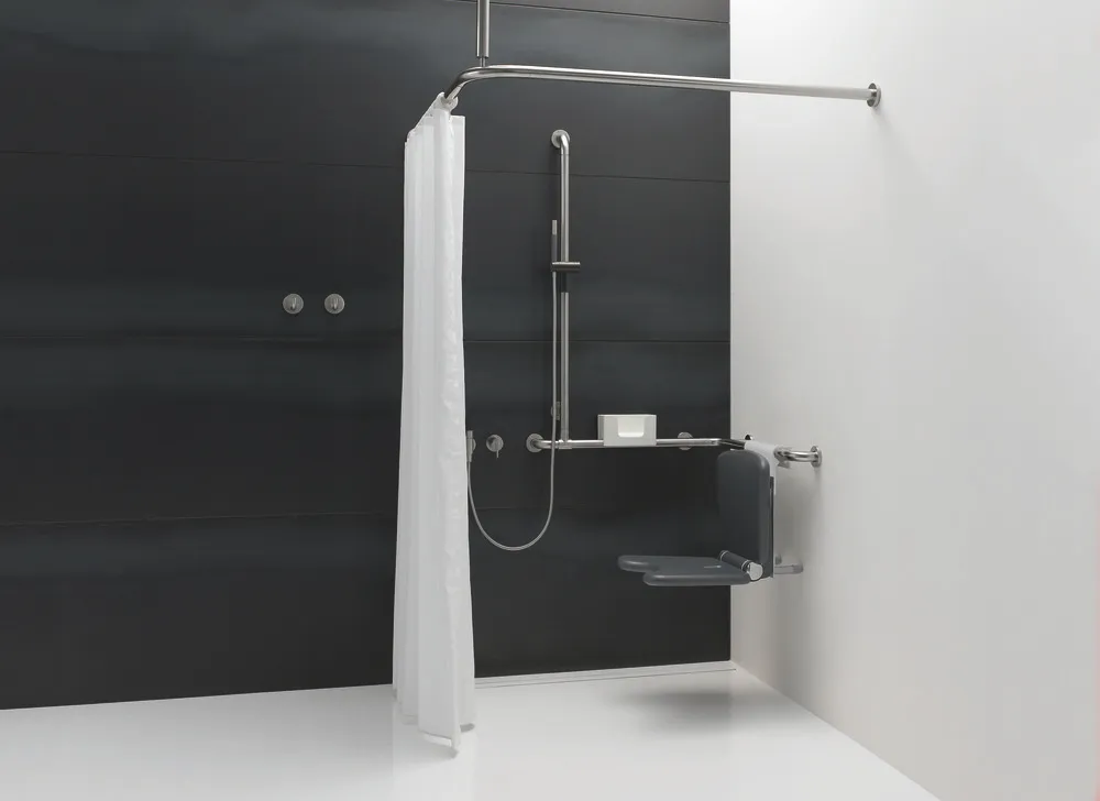 - A detailed list of the possible combinations of grab rails, Angled rails and shower handrails with matching hanging seats can be found in our online catalogue in the download area of the respective product.
