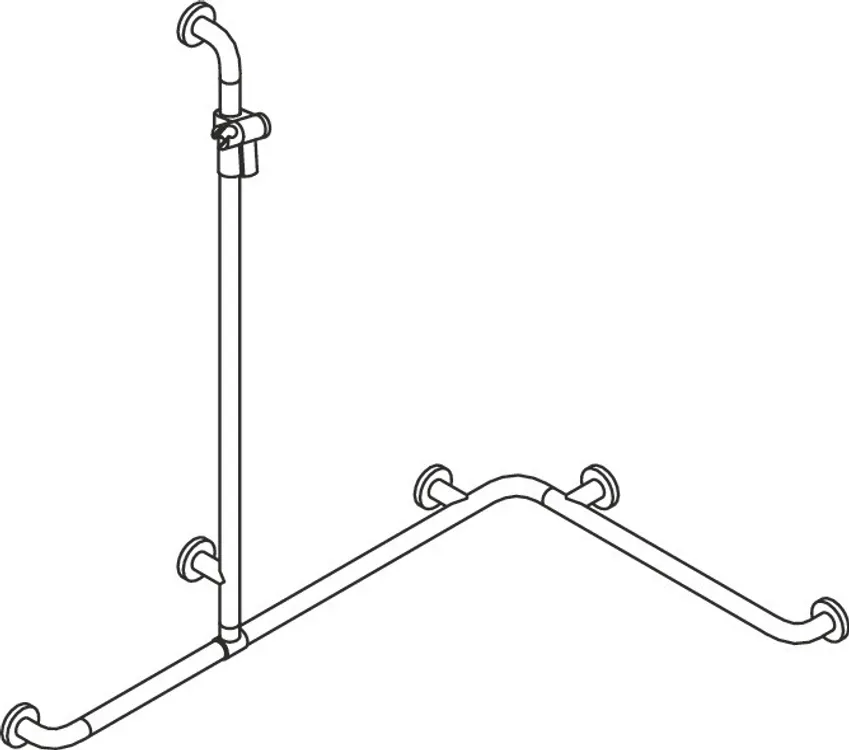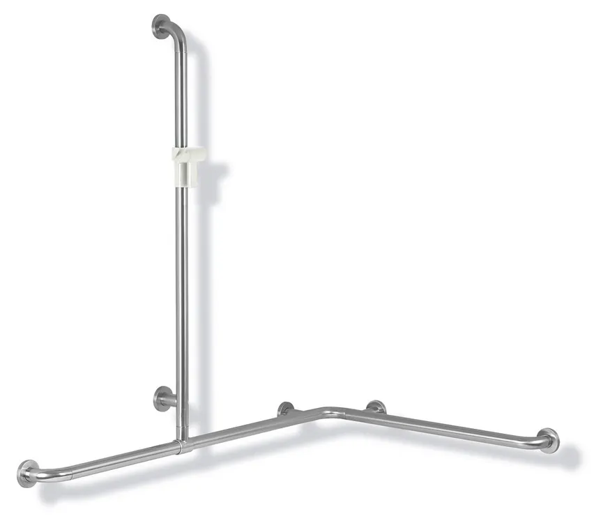 Show more Stainless steel, matt polished, with infinitely adjustable shower head holder made of high-gloss polyamide in HEWI colours 90 (deep black), 92 (anthracite grey), 98 (signal white) or 99 (pure white), vertical length 1250 mm, horizontal lengths (corner mounting) 1185 mm and 762 mm, Diameter 33 mm, tested up to 200 kg when used with HEWI fixing material, Recommended maximum weight of the user: 150 kg.