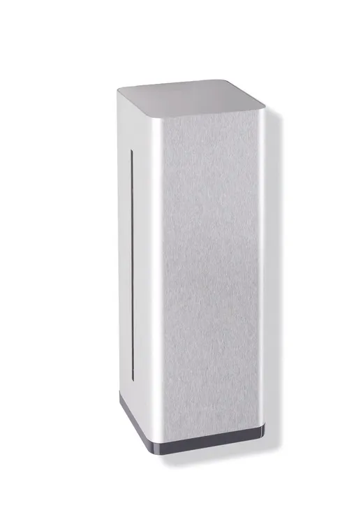 Show more cubic body with recessed wall base, with inner container for free filling, capacity 600 ml, inner container can be removed for cleaning, 95 mm wide, 275 mm high and 95 mm deep, wall-mounted base 10 mm deep, made of high-quality stainless steel, Surface satin finished, lever and functional end made of high-quality polyamide in HEWI colours 90 (jet black), 92 (anthracite grey), 98 (signal white) or 99 (pure white), including non-corrosive fixing material, without first filling, not suitable for disinfectant.