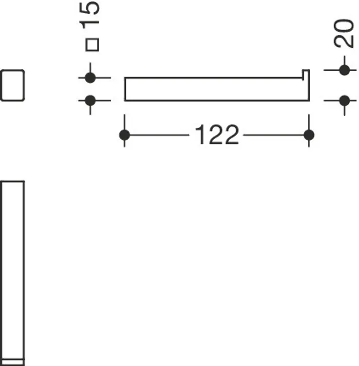 - width 15 mm, height 20 mm, depth 122 mm