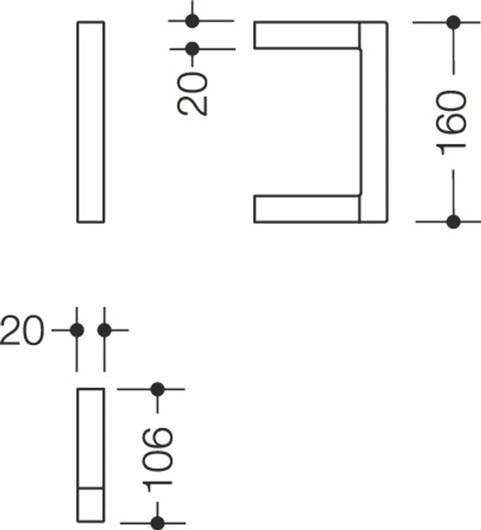 Show more for holding on to and standing up independently, combinable with shelf 100.03.10045, 20 mm wide, 160 mm high, 106 mm deep, square profile made of metal, high-quality chrome-plated, including non-corrosive fixing material.