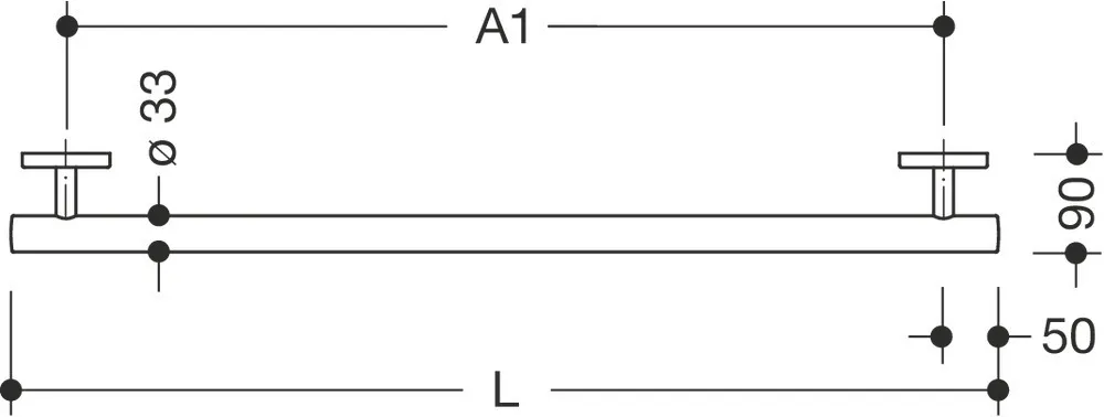 - centre-to-centre made-to-measure from 220 to 1100 mm, rail diameter 33 mm, 90 mm deep