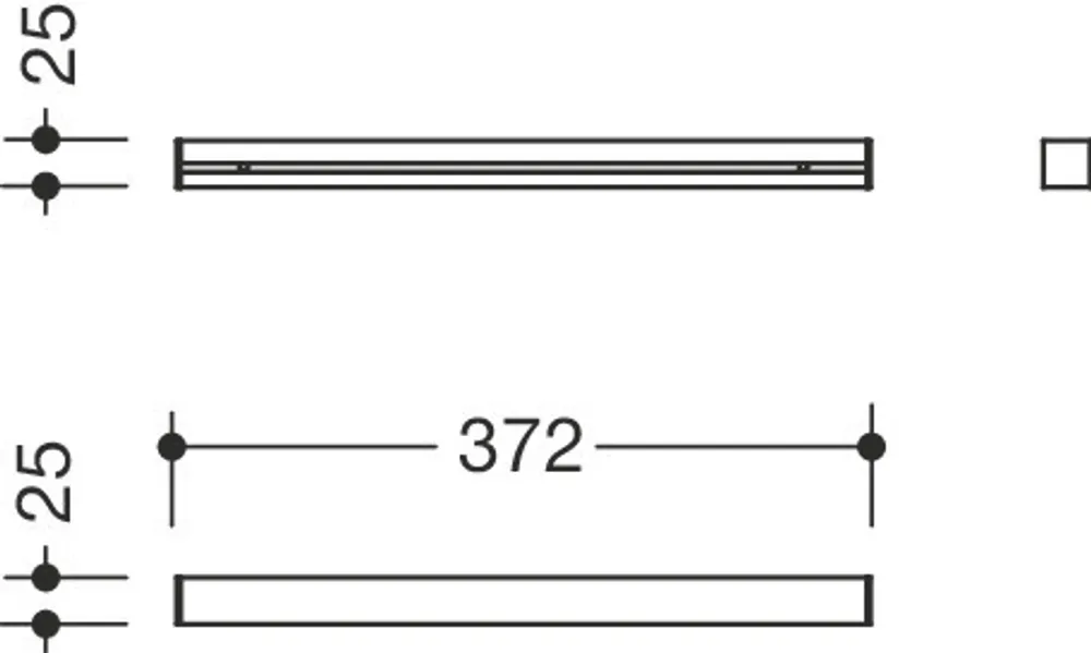 hooks and shelves can easily be inserted and removed using the profile, additional storage space or hanging space on the wall, 372 mm wide, cross-diameter 25 x 25 mm, made of aluminium, powder-coated in HEWI colours DX (matt white), DC (matt black) and SC (matt dark grey pearl mica), including corrosion-free HEWI fastening material.