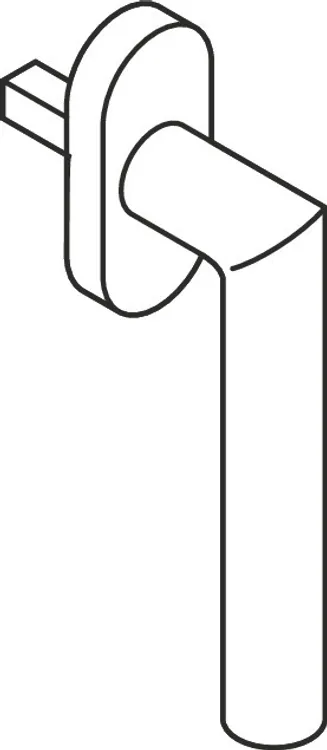 Design 162X made of round tubular stainless steel, mitred (1.4301), 21.3 mm diameter, 135 mm long, with 1.5 mm wall thickness, with 90 degree latching points and 7 mm square spindle, length protrudes by 30 mm (other lengths and 45 degree latching on request). Preassembled on a oval rose 71 x 31.5 mm, with pivot diameter 10 mm, concealed screw fixing, screw hole spacing 43 mm, cover cap made of stainless steel (1.4301), wall thickness 1.5 mm. Supplied without fixing screws. Surface of the window handle and the rose with satin finish.