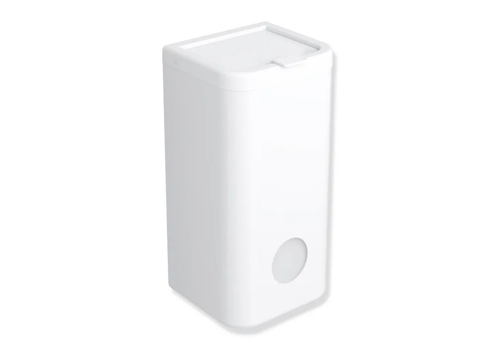 Afficher plus corps et couvercle en polyamide brillant dans la couleur HEWI 98 (blanc de sécurité), élément de cadre en haute qualité, polyamide mat, contenance env. 6 l, largeur 161 mm, hauteur 310 mm, profondeur 141 mm, montage mural