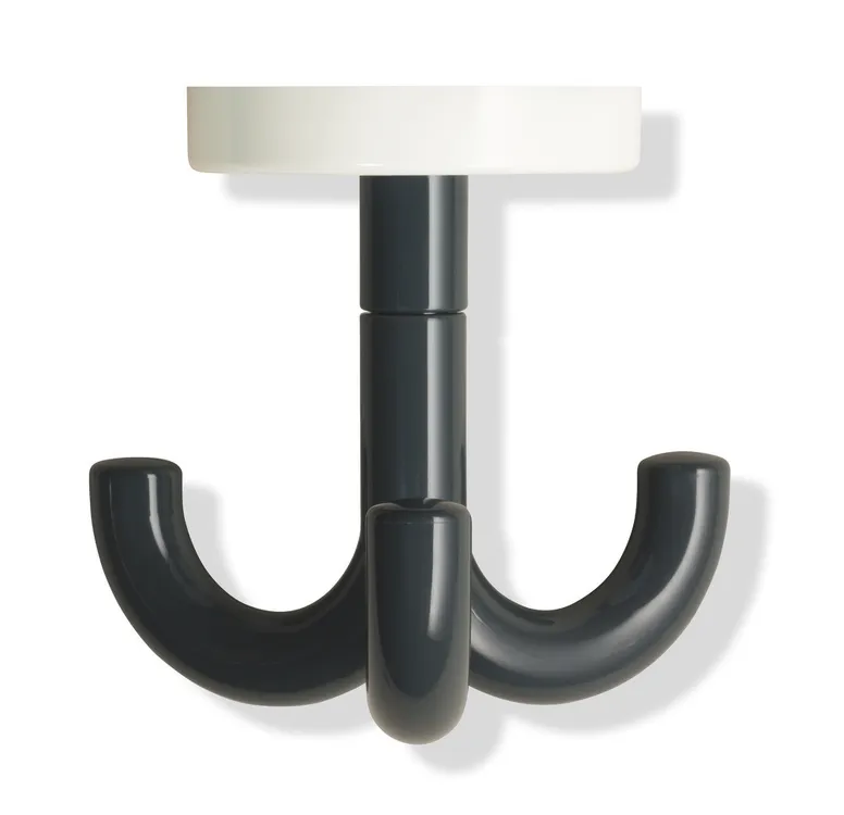Afficher plus crochet rotatif à visser par en dessous, diamètre de rosace de 50 mm, hauteur 70 mm, protection antivol grâce aux vis cachées, en polyamide de haute qualité, cache de rosace dans la couleur HEWI 99 (Blanc pur), partie crochet selon le tableau des couleurs HEWI, matériel de fixation anti-corrosion inclus